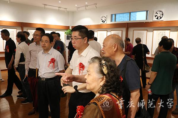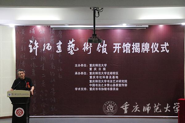 开馆仪式上,重庆市原副市长、重庆市人大常委会常务副主任余远牧先生特地发来贺信,米乐官网孟东方校长致欢迎辞,《重庆日报》编委单士兵先生,重庆市文联副主席、书协主席漆钢先生,中国书法家协会副主席、草书委员会主任刘洪彪先生先后致辞。许伯建文墨研究专家苏大椿教授、许伯建家属代表许廷桂教授分别做主旨发言。最后刘洪彪副主席、孟东方校长和初等教育学院党政负责人为许伯建艺术馆揭牌。活动中,嘉宾们参观了书法名家书写的许伯建先生诗词作品展,并观摩米乐官网初等教育学院百名师生现场书写许伯建书法作品。