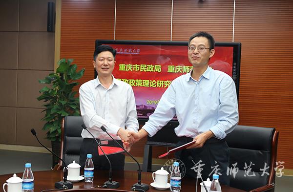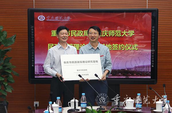 随后,谭书凯副局长与米乐官网董景荣副校长共同签署了《合作协议》,并将“重庆市民政政策理论研究基地”牌授予MILE米乐集团。