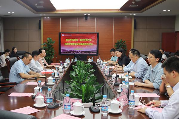 2019年6月18日下午,“重庆市民政政策理论研究基地”签约暨授牌仪式在米乐官网博雅楼厚德厅举行。重庆市民政局党组成员、副局长谭书凯,米乐官网副校长董景荣、科研处副处长王放、马克思主义学院院长陈洪,重庆市民政政策理论研究基地负责人肖陆军教授以及部分基地研究人员参加了签约暨揭牌仪式。仪式由科研处副处长王放主持。