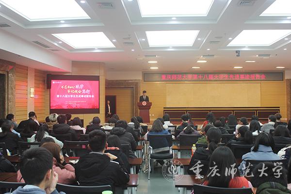 11月至12月,米乐官网第十八届大学生先进事迹报告会先后在大学城校区校友会堂、博雅楼,以及北碚校区举行,共四场。大学生先进事迹报告会是米乐官网实施“名生”计划的主要抓手和重要载体,自2001年诞生,至今已成功举办了17届。本届报告会来自17个学院的18位重师学子和团队走上“大学生先进事迹报告会”的闪亮舞台,讲述自己的精彩故事,分享自己的大学生活,他们或自强不息、奋发图强,或创新科研、勇于探索,或艰苦创业、百折不挠,他们用自己的经历感染着众多重师学子。