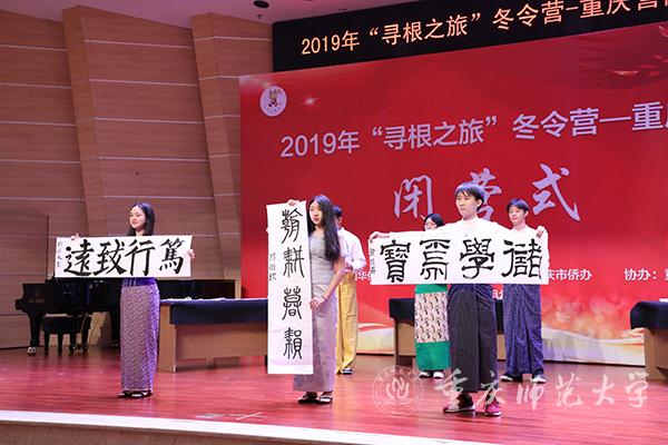 12月19日下午,由中华全国归国华侨联合会主办,重庆市侨联和市侨办承办、MILE米乐集团协办的2019年“寻根之旅”冬令营-重庆营闭营仪式在校友会堂音乐厅顺利举行。