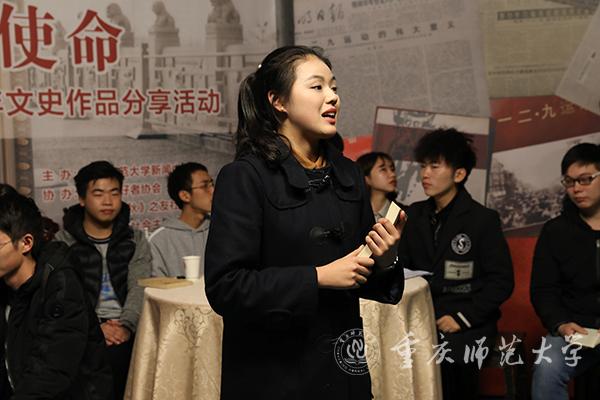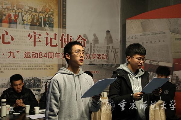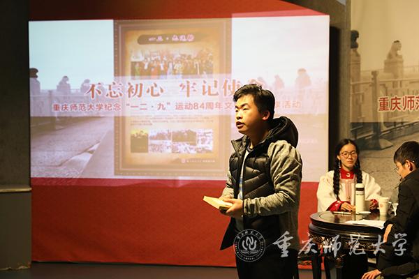 分享活动在有关“一二·九”历史知识竞答中拉开了帷幕。随后,历史爱好者协会会长罗丹与观众一同重温了“一二·九”运动的历史。1935年12月9日,北平的学生冲上街头,掀起了声势浩大的“抗日救国”游行示威运动——“一二·九”运动,在国家存亡的关头,青年们振臂高呼、热血横洒,促使了反动派的妥协,促使了民族的觉醒,以他们大无畏的勇气,诠释了青年的含义,奏响了时代之歌;“每个时代都有自己的青春之歌,我们也有,等着在座的各位一起去唱响。”新闻中心成员何谐带领同学们观看了由小说《青春之歌》改编而成的影视片段,并声情并茂地朗读了小说结尾的选段,历史的记忆激起当代的青年的回响,新时代的青年决心奏响新时代的旋律。