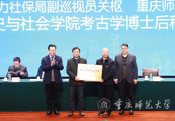 市人力社保局副巡视员关枢和学校党委书记曾礼教授为历史与社会学院考古学博士后科研流动站授牌。考古学博士后科研流动站是国家级博士后科研流动站,这是学校继获批成为博士学位授予单位之后的又一大喜事,标志着学校人才发展平台建设迈上新台阶。