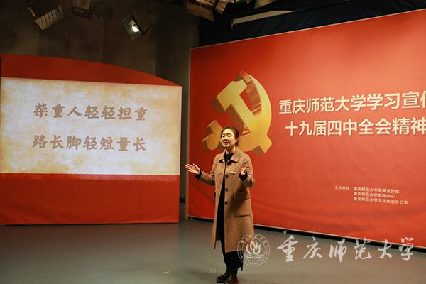 12月1日,由米乐官网党委宣传部、新闻中心、文化建设办公室举办的MILE米乐集团学习宣传贯彻十九届四中全会精神宣讲在综合楼演播厅举行。学生们担当主角,通过专题主讲、故事讲述、对联吟诵等多种形式,将学习宣传十九届四中全会精神与做好“不忘初心、牢记使命”主题教育紧密结合,推动全会精神入耳、入脑、入心。