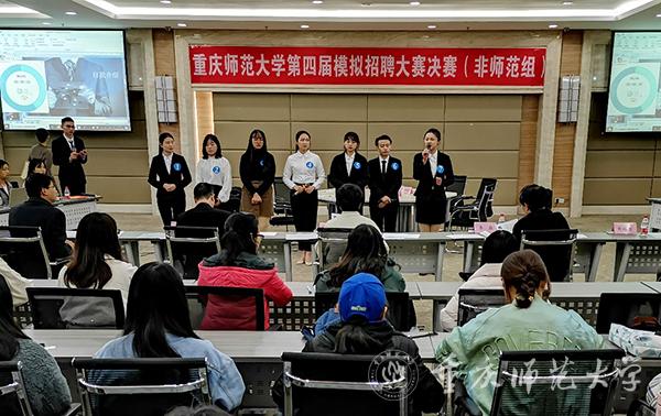 本次大赛分为师范组和非师范组两个组别,经过学院初赛、校级复赛和决赛三个阶段,最终两个组别各21名同学进入决赛。为达到以赛促学的目的,在学院组织指导培训的基础上,主办方为进入的复赛选手们提供了简历撰写培训、无领导小组讨论、说课等面试技巧培训。
