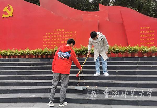 地理与旅游学院研究生一、二支部立足为党育人、为国育才,开展“清扫党员承诺墙,重温入党誓词”活动,增强党员的党性观念和责任意识。