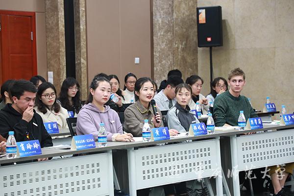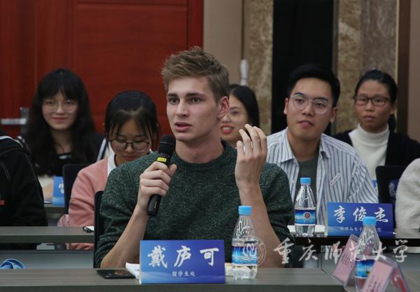 会上,学生代表纷纷感谢学校为学生创建的优良学习条件,并从不同角度提出了意见建议。历史与社会学院考古学专业肖玲玲表示,作为重师首批博士生,孟校长将录取通知书送到手中,让她十分高兴,她感谢学校提供的学术平台,并就制定学校博士生管理条例提出建议。初等教育学院的樊馨蔚同学感谢学校对北碚校区的关心,暑假期间,北碚校区的基础设施得到极大修缮,她就提高师范生技能水平,加强对外交流,促进与大学城校区的互动交流提出建议。美术学院环境设计专业陈俊霖同学提议学校要更为重视创新创业培养。物理与电子工程学院刘理斯同学就大学四年的课程设置安排与实习安排提出建议。比利时留学生戴庐可提议增强中国学生与留学生之间的交流,加强不同文化之间的融合发展……33名来自不同学院不同专业的学生代表从教学模式、硬件设备、招生就业、学术活动、培养方案、基础设施等多个方面提出意见建议。