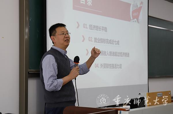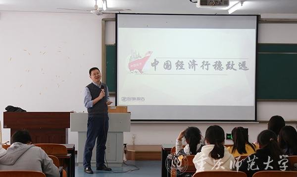 11月7日下午,米乐官网副校长田盈以“中国经济行稳致远”为主题,在特教楼2315教室为经济与管理学院2019级工商管理、金融工程、市场营销和经济学专业学生讲授“形势与政策”课。