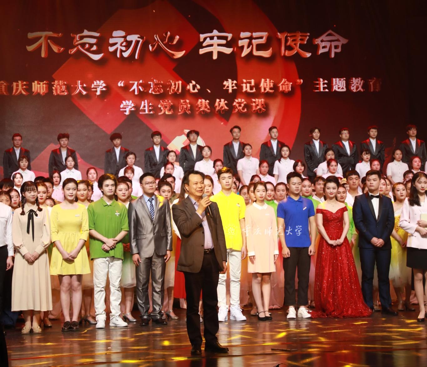 为深入开展“不忘初心、牢记使命”主题教育,激励学生党员更加自觉地践行初心使命,10月31日晚,米乐官网“不忘初心、牢记使命”主题教育学生党员集体党课在校友会堂演出厅精彩呈现。校党委常委、相关职能部门负责人,二级党组织书记、全体学生党员共1000余人参加。