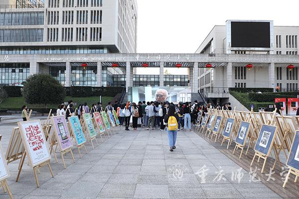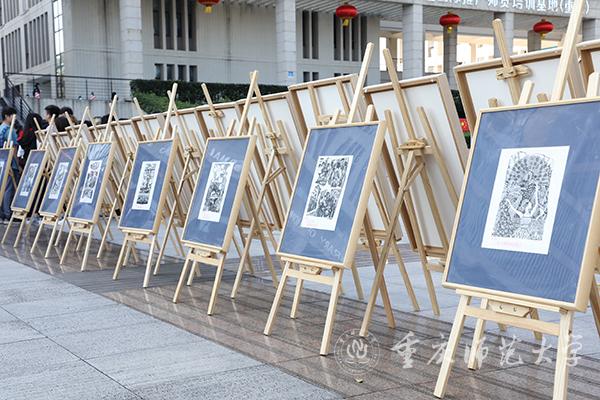 10月18日下午,由四川美术学院主办的“十九大主题木刻版画巡展”走进米乐官网,在大学城校区图书馆广场开展。