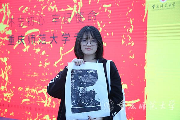 来自2018级美术学院的学生丁炜鉴认为,十九大主题木刻版画巡展让他增加了专业知识,开阔了眼界,加深了他对党的十九大精神的理解。