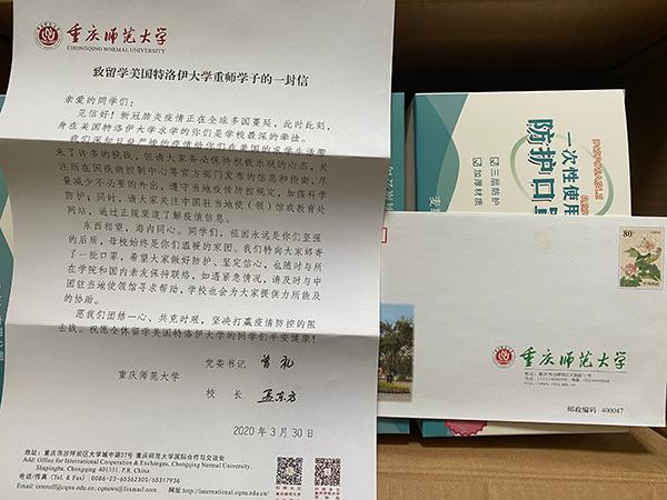 与此同时,学校紧急调拨一批防护口罩寄往三所美国高校,帮助留美学生缓解防护物资紧缺的压力,勉励海外游子团结一心、共克时艰,坚决打赢疫情防控阻击战。