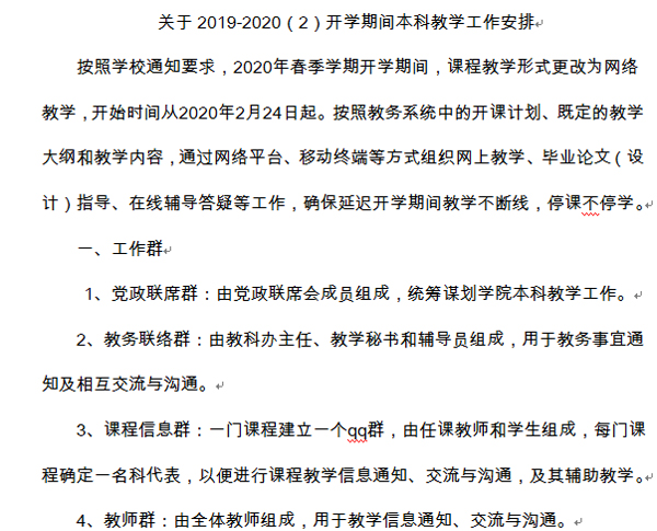 积极筹备、精准施策,开学前期准备充分。为确保延迟开学期间“停课不停教,停课不停学”,学院第一时间建立健全战“疫”期间教学工作机制,成立党政联席、教务联络等工作群,核定线上课程、审核教学方案、组织服务团队,全力护航春季学期教学工作。学院提前摸排了全院教师拟使用平台情况,组织成立网络教学指导小组,为教师提供网络教学指导和咨询;同时,支持老师根据网络教学需要购买数位板、耳麦等教学工具,为线上教学的开展做好准备;学院青年教师充分发挥在线上教学中的带头作用,其中,学院李万俊老师自2月9日起连续14天每天工作超过13个小时,牵头编写了“中国大学MOOC”平台教师版、学生版使用说明书供师生使用,为学院线上教学的顺利开展提供了强有力的保障。