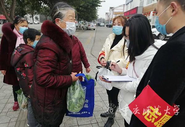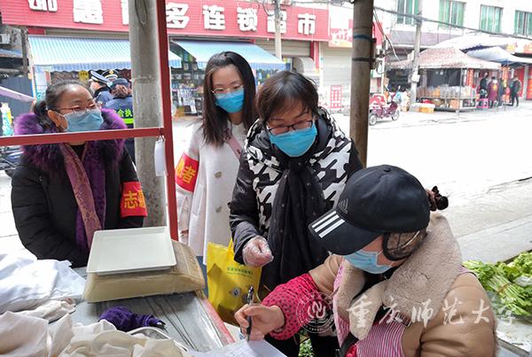 在重庆市江北区五里店街道五筒路1号25小时小区,数学学院数学教育党支部学生党员张颖心系疫情,主动报名社区抗疫志愿者。做志愿者期间,她负责测量出入小区人员的体温并积极向小区居民宣传疫情知识,她还主动为隔离在家的邻居拿外卖,竭力帮助存在困难的居民渡过难度,守护邻里安全。