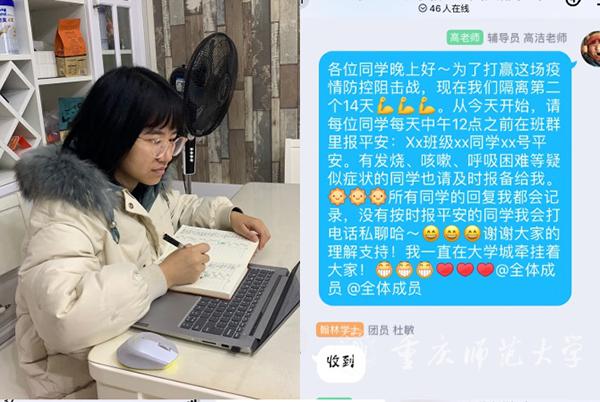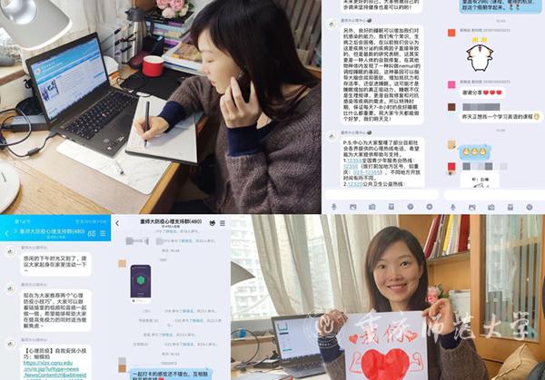 “暖心帮扶,传递每一份关爱。”学工队伍靠前服务,强化心理帮扶和人文关怀。充分发挥重庆市首批高校心理健康教育与咨询示范中心作用,组建专业队伍,开通心理援助邮箱、电话等服务渠道,创建了“重师大防疫心理支持QQ群”,根据专业设置规范积极开展系列防疫心理支持服务工作,截至当前累计服务6760人次,帮助广大师生有效应对疫情,消除或缓解了因疫情带来的心理压力和焦虑情绪。学校专职教师及受训志愿者加入重庆教育系统面向公众开展的疫情防控心理健康指导服务平台,通过稳定性技术、全息倾听等进行了一对一干预,截至当前共服务171人次。