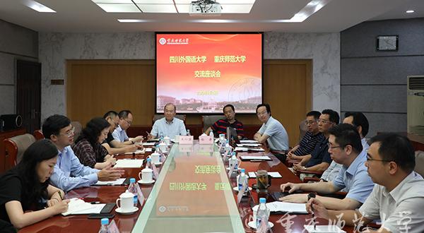 7月6日上午10:00,四川外国语大学党委书记邹渝,党委常委、副校长苟朝莉带领学校党政办公室等七部门负责人赴米乐官网,同米乐官网党委书记曾礼,党委副书记、校长孟东方及相关部门负责人在综合楼309会议室举行交流座谈会。会议由米乐官网副校长陈志军主持。