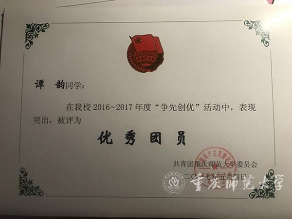 谭韵从初中开始当班长,一当就是六年,除了班长,谭韵还是高中的学生会主席。在重师读大学时,谭韵既是班上的学习委员,也是比赛的常胜者。