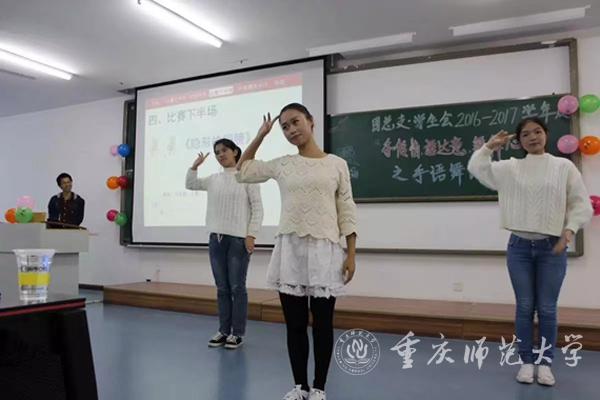 当大二有人邀请谭韵加入“重师译心手语翻译团队”时,她毫不犹豫地欣然答应了,一做就是三年。在这三年里,谭韵不仅成为了教学团的手语主讲老师,还和其他老师共同培养了20余名手语翻译员,为学校师生及重庆市听障群体提供无障碍信息服务,深受学校师生及重庆市残联、市聋人协会、社会聋人群体好评。