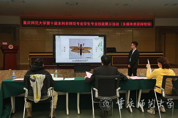 影视类的多媒体作品结合时事,展示完整的故事情节,传递学科素质,发扬学科精神;信息技术类作品则着眼生活,合理运用多媒体智能化,创设方便快捷的软件,展现学科人文情怀。各评委从专业性、知识普及性、实用性三个方面对选手进行点评和提问,并指出希望优秀作品能成为重师文创的一部分,助力发展重师文化产业,提高文化软实力。