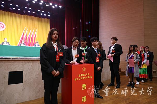 公示总监票员、监票员,总计票员、计票员名单后,全体与会代表通过不记名投票正式选举出了第十二届学生会和第一届研究生会的主席团成员。