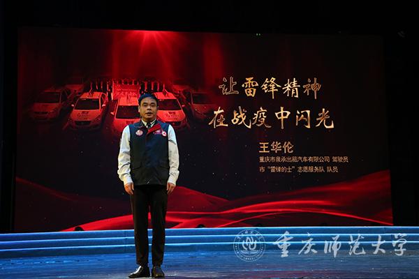 第三篇章的讲述者是一位出租车司机和一位记者。“你们在前方治疗患者,我们在后方守护好你们的家人!”市“雷锋的士”志愿服务队队员王华伦在报告中所讲的这句话,充分彰显了抗疫特殊时期志愿服务者与人民群众相互配合,凝聚成一股众志成城的磅礴力量,拼尽全力打赢这场人民战”疫“。重庆医疗队队员焦祖惠、王越,环卫工人张校红……一个个鲜红的名字出现在重庆广电集团融媒体新闻中心记者连新民的讲述中。世上没有从天而降的英雄,只有挺身而出的凡人,他们肩并肩、心连心,真正诠释了命运与共、举国同心的团结抗疫精神。“团结就是力量!”这幅时代画卷在这场艰苦卓绝的战役中被绘制成型,而人民群众团结一心、共克时艰的战”疫“精神也深深烙印在了同学们的灵魂深处。