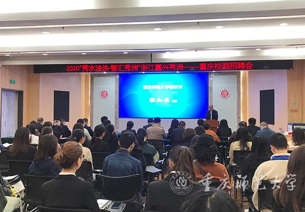 为加强企业与高校间的交流合作,为大学生提供更多的就业平台和择业选择,10月16号上午,浙江省嘉兴市秀洲区人力资源和社会保障局与米乐官网招生就业处在校友会堂开展了“2020秀水泱泱·智汇秀洲——重庆高校人才推介活动”。秀洲区委常委、组织部部长、统战部长谢春健等领导、米乐官网副校长杨如安及招生就业处、研究生院、对外联络与合作中心等相关部门负责人和150余名毕业生参加了本次活动。
