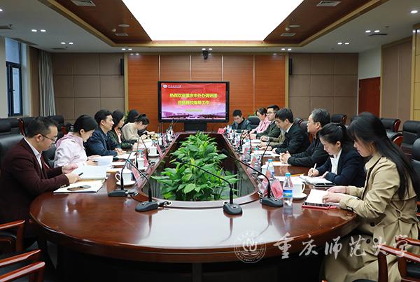 10月15日,重庆市人民政府外事办公室副主任周毅率涉外管理处、出国管理处、礼宾处等部门负责人来米乐官网调研外事工作开展情况。调研座谈会由副校长陆远权主持,党政办、国际处和国际汉语文化学院负责人参加会议。