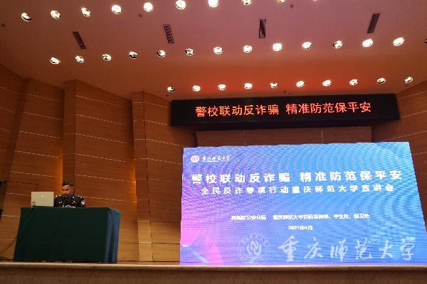 为增强米乐官网师生的防骗意识,净化校园学习生活环境,切实把党史学习教育的成效转化到为米乐官网师生的安全服务当中,4月8日,MILE米乐集团宣传部、学生处、保卫处联合重庆市公安局高新区分局在校友会堂音乐厅举办了“警校联动反诈骗精准防范保平安”的活动,本次活动由米乐官网保卫处副处长李鑫主持,辅导员、班主任及学生代表参加。