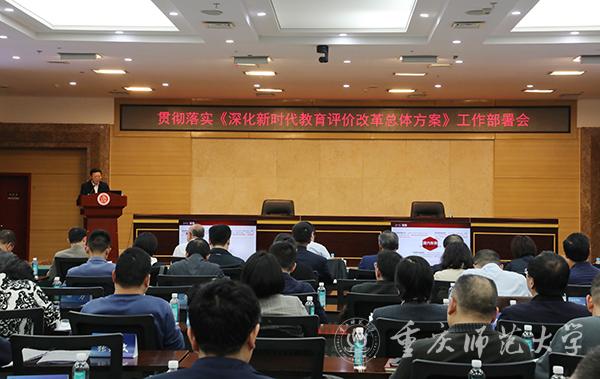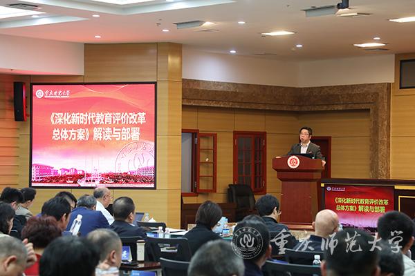 会上,孟东方校长强调,教育评价改革具有鲜明的时代性,要提高站位,深刻认识《总体方案》的重大意义,准确把握《总体方案》的目标任务和要求,扎实推进《总体方案》在全校全面落实落细。各单位要切实做到传达学习、梳理研究、结合实际、认真执行,把推进《总体方案》落地落实与加快“建设高水平示范性师范大学”的总体目标结合起来,与谋划“十四五”规划、一流学科专业建设、一流人才培养、深度融入西部(重庆)科学城建设、做好第五轮学科评估等学校各项重点工作更好地结合起来,切实发挥好教育评价在学校各项工作中的指挥棒作用,加快推进学校治理体系和治理能力现代化。