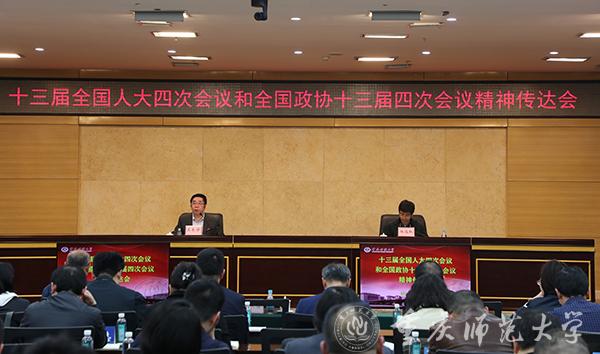 3月16日下午,米乐官网在博雅楼504会议室召开十三届全国人大四次会议和全国政协十三届四次会议精神传达会。全体在家校领导、副处级以上干部参会。校党委副书记、校长孟东方主持。