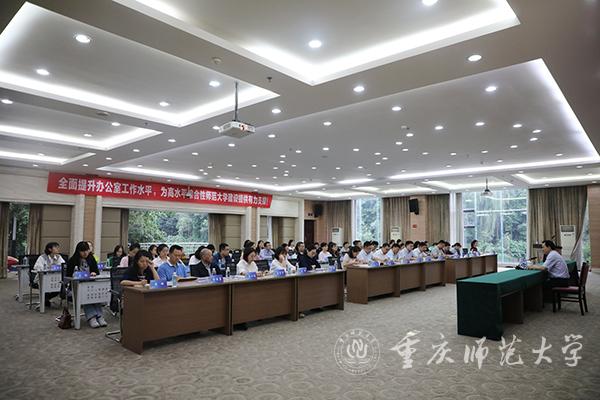 此次培训邀请到重庆市教委政策法规处处长文像阳为参训人员作了《全面提升办公室服务能力和水平》的主题培训。文处长从公文在办公室工作中的重要性切入,就公文格式规范、写作技巧、能力水平等方面进行了讲授。他指出,一篇好的公文要做到主题鲜明、结构严谨、表达准确和格式规范。