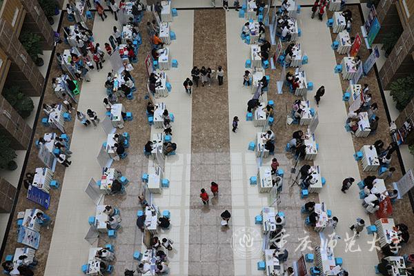 此次双选会共有112家企事业单位参会,其中国有企业14家、三资企业2家、民营企业62家、中初教育22家、高等教育8家、高等职业院校4家,共计提供岗位4117个。面向师范生招聘的单位85家,共计3077个岗位;面向非师范生招聘的单位27家,共计1040个岗位。各学院积极动员大三、大四年级学生近500人参与。