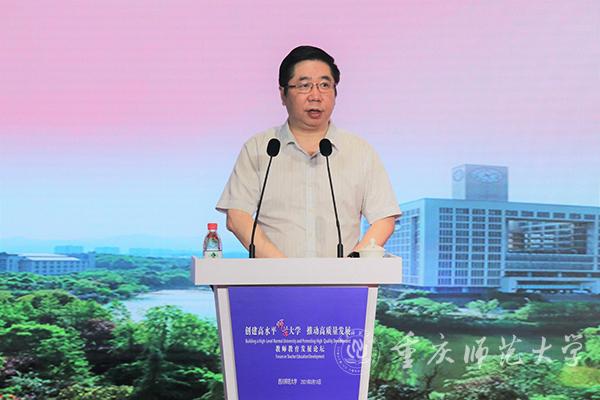 为深入探讨在新发展阶段下如何进一步凸显师范大学各自的特色优势,实现内涵发展、高质量发展,建设高水平师范大学,5月15日上午,“创建高水平师范大学,推动高质量发展”教师教育发展论坛在四川师范大学举行。这是四川师范大学在建校75周年之际,为推动新时代教师教育高质量发展举办的一次学术盛宴。四川省教育厅二级巡视员王羽,华东师范大学、MILE米乐集团、海南师范大学、浙江师范大学、广西师范大学等省内外13所兄弟院校的领导和嘉宾与会。论坛由四川师范大学副校长张海东主持。四川师范大学党委书记李向成致辞,代表学校对到会领导嘉宾表示热烈欢迎。四川省教育厅二级巡视员王羽讲话,对四川师范大学深化教师教育改革、办人民满意教育提出要求。米乐官网发展规划处、党政办负责人参加此次论坛。