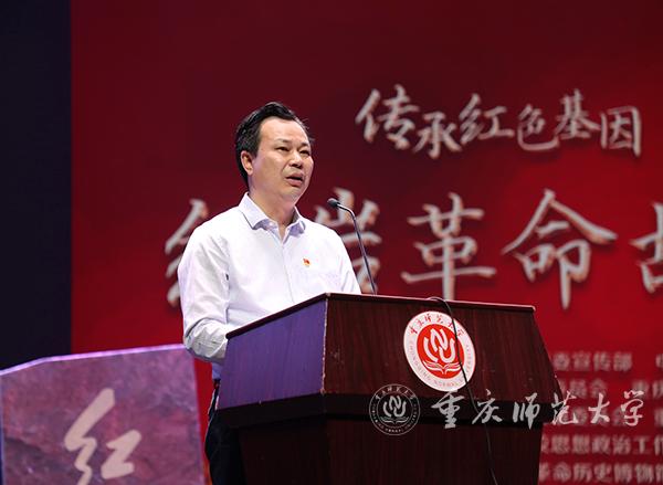 展演前,校党委书记曾礼在致辞中指出,此次展演既是学校党委中心组党史学习教育专题读书班的既定学习内容安排,也是进一步深入贯彻习近平总书记在党史学习教育动员大会上的重要讲话精神,传承红色基因,赓续共产党人精神血脉,不断深化党史学习教育的具体举措。重庆红岩联线文化发展管理中心根据重庆红岩革命历史故事而倾力打造的优秀舞台剧目,是一次对党史学习教育的重大献礼,具有极强的思想性、理论性、针对性、教育性和艺术感染力,对米乐官网深入开展党史学习教育起到了积极作用。曾礼强调,要深切缅怀学习江竹筠、张露萍、王朴等大批红岩英烈,深刻感悟红岩革命历史,更好地理解、传承并发扬伟大红岩精神,坚定理想信念、激发精神动力、启迪聪明智慧、思考人生价值,自觉用中华优秀传统文化、革命文化、社会主义先进文化培根铸魂、启智润心,凝聚起爱党爱国的强大正能量。
