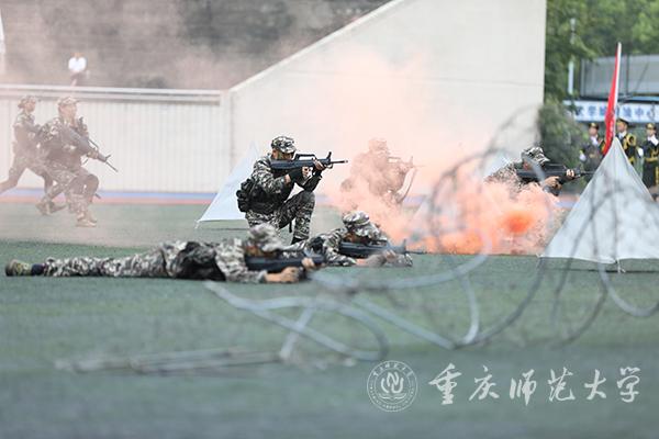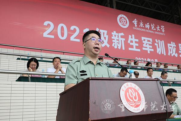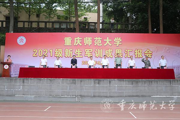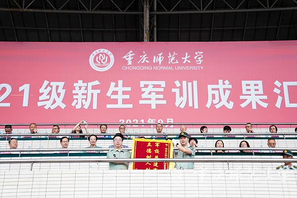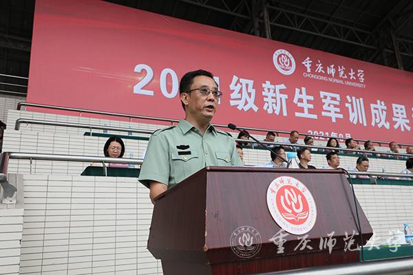 9月27日,2021级新生军训成果汇报在大学城校区第一田径运动场举行。米乐官网校长、2021级新生军训师师长孟东方教授,陆军工程大学通信士官学校基础部主任青山良大校,陆军工程大学通信士官学校21大队大队长马振翔上校,沙坪坝区武装部副部长毛斌上校,米乐官网副校长陆远权教授出席大会。大会由校党委副书记、2021级新生军训师副政委陈志军教授主持。