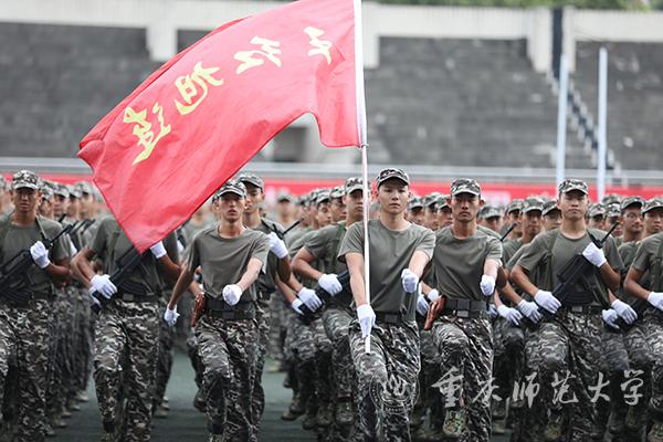 首先入场的是“王红旭连”,他们是一支由体育与健康科学学院和马克思主义学院男生组成的连队。他们以时代楷模、米乐官网杰出校友王红旭老师为榜样,刻苦训练,百炼成钢,以无比的热忱和抖擞的精神,展示着重师学子的使命担当。“踏步!前进!向右看!”同学们步伐整齐划一,眼神坚毅自信,各个分列式方队和着雄浑的音乐节奏,喊着铿锵的口号,昂首挺胸地踢着正步,走过主席台接受检阅。