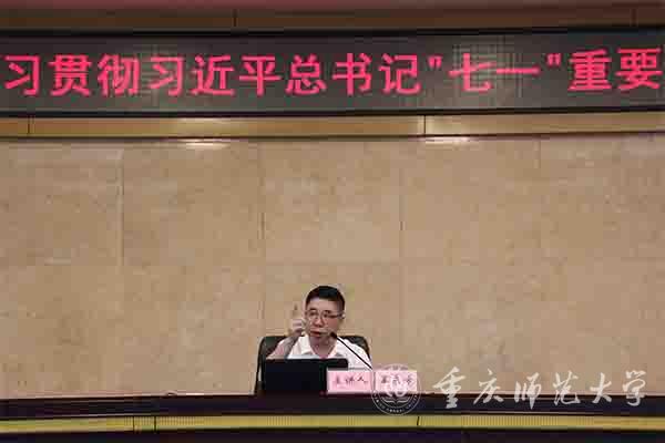 三是学习贯彻“七一”重要讲话精神应融会贯通、深学笃用。孟校长指出,把“两个一百年”奋斗目标贯通起来领会把握,将“四个伟大成就”和“四个庄严宣示”相结合,准确把握精神实质,深入思考领会中国共产党为什么能、中国特色社会主义为什么好和马克思主义为什么行,学习传承伟大建党精神和中国共产党人的精神谱系紧密结合。要把坚持走自己的路同推动构建人类命运共同体相联系,把具有许多新的历史特点的伟大斗争不断推进党的建设新的伟大工程贯通起来领会践行。他强调,研究生应发挥学科特长以及教育优势弘扬光荣传统、赓续红色血脉,继承红岩精神,汇聚奋斗新时代。