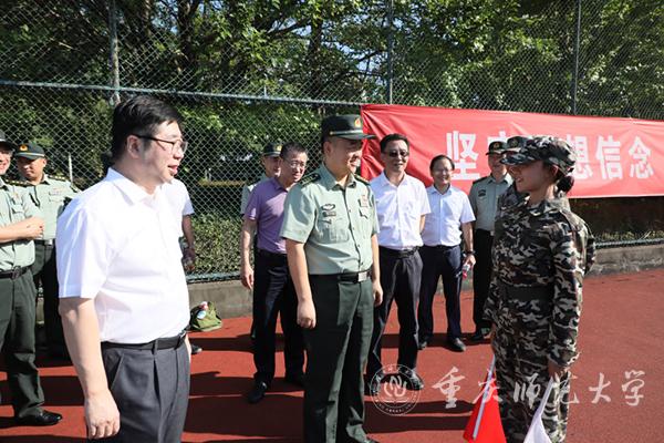 9月22日上午9点,陆军工程大学通信士官学校校长魏涛大校、副政委张立峰大校、办公室主任谢宜杰上校、科研学术处处长沈建国大校、供应保障处处长金伟勇上校、基础部主任青山良大校、教务处副处长李学中校和教务处参谋陈凡少校一行来米乐官网大学城校区检查指导2021级新生军训工作。米乐官网校长孟东方、党委副书记陈志军、党政办主任陈进东、保卫处处长唐加祥、学生处处长侯明志等陪同检查。