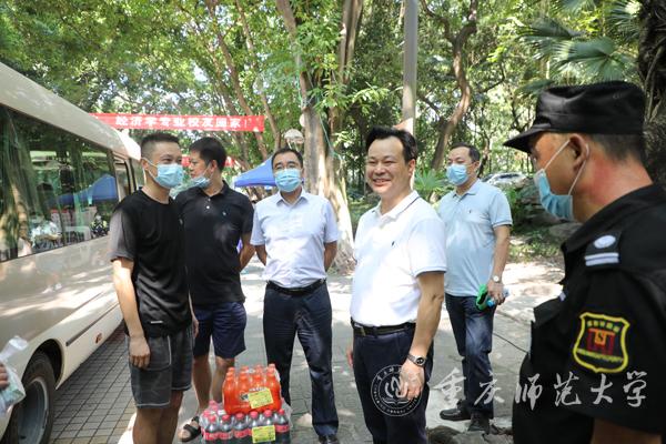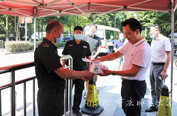 8月3日上午8点30分,校党委书记曾礼带队赴北碚校区、沙坪坝校区、大学城校区开检查疫情防控工作,并慰问在疫情、高温期间在岗的工作人员。