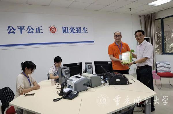 7月24日上午,校党委副书记陈志军、校工会主席李川一行,慰问了学校本科招生远程录取现场的工作人员。