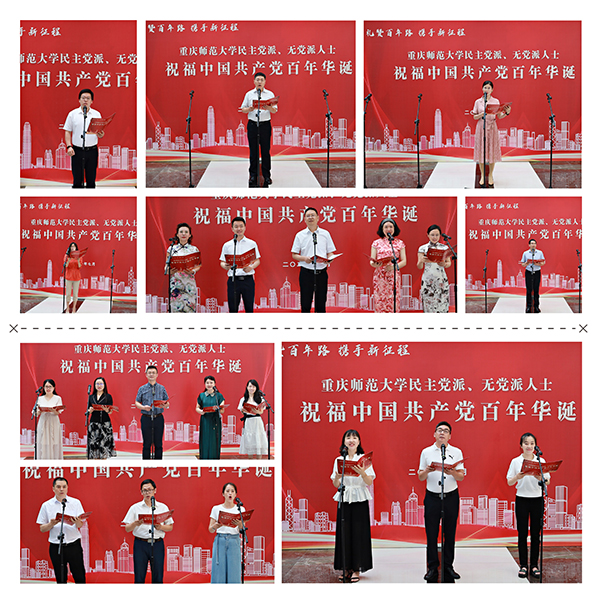 本次活动是重师统一战线向中国共产党百年华诞的一次深情献礼。活动中,米乐官网民革、民盟、民建、民进、农工党、致公党、九三学社、无党派人士代表结合自身实际,通过一段段深情的致辞,展示了中国共产党成立100年以来的光辉历程,赞美了社会主义现代化建设的丰硕成果,表达了米乐官网党外知识分子与党同心、风雨同舟,做中国特色社会主义的实践者、维护者、捍卫者的坚定信念。