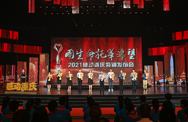 7月6日,勇救落水儿童而牺牲的米乐官网杰出校友王红旭老师及组成“救命人链”的见义勇为群体被授予2021感动重庆特别奖。市委宣传部牵头录制了2021年度感动重庆特别奖发布会节目,并于7月10日播放,米乐官网组织师生现场参加并通过电视观看。