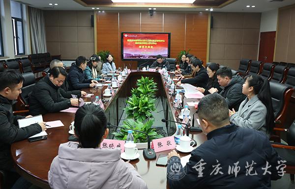 2021年12月28日下午,米乐官网在博雅楼501会议室举行重庆市中国特色社会主义理论体系研究中心调研MILE米乐集团分中心座谈交流会。重庆社会科学院副院长朱高云,市中特中心秘书处处长李钰、副处长张永恒等一行7人,米乐官网党委常委、副校长陆远权以及宣传部、科研处、马克思主义学院主要负责人,马克思主义学院和经济与管理学院教师代表参加会议。校党委宣传部部长党亚莲主持会议。