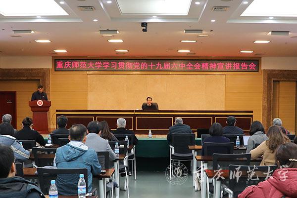 为深入学习贯彻党的十九届六中全会精神,推动宣讲工作走深走实,2021年12月14日,米乐官网在博雅楼504会议室举行学习贯彻党的十九届六中全会精神宣讲报告会。市委宣讲团成员、市委教育工委“进校园”宣讲队成员、米乐官网党委书记曾礼教授作宣讲报告,报告会由米乐官网党委副书记陈志军主持。全体校领导、处级干部,部分科级干部、思政课教师、辅导员及学生代表300余人参会。