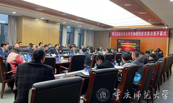 党委书记曾礼、教务处处长申仁洪、重庆物理学会理事长吴兴刚、重庆市教育委员会高教处干部哈宁武,以及重庆市17所高校的相关领导、专家和学生代表参加了决赛开幕式。开幕式上,曾礼书记致欢迎辞。他介绍了学校近年发展概况及物理学科创新特色,肯定了物理创新竞赛对于学生创新思维和创新能力培养的重大意义。