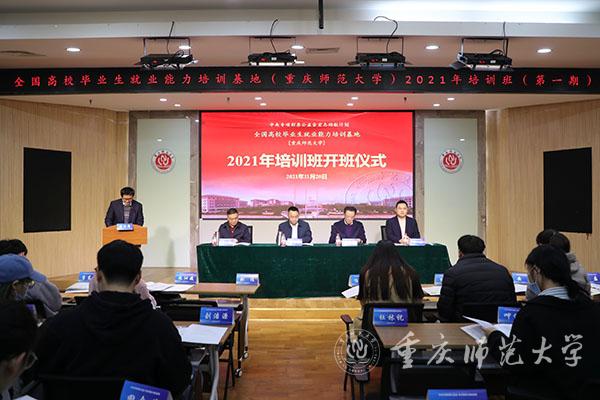 11月20日上午,教育部中央专项彩票公益金宏志助航计划全国高校毕业生就业能力培训基地(MILE米乐集团)第一期培训班在米乐官网大学城校区就业指导中心317多功能厅正式开班。重庆市大学中专毕业生就业指导服务中心主任唐雪平,米乐官网党委副书记陈志军、培训基地相关工作人员,以及来自重庆医科大学、四川美术学院、重庆科技学院、重庆机电职业技术大学、重庆轻工职业学院、重庆护理职业学院和米乐官网的148名学员参加了开班仪式。