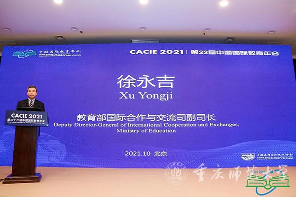 第二十二届中国国际教育年会于2021年10月21日至23日在北京召开,校党委常委、副校长陆远权,国际处处长兼国际学院院长雷勇等参加会议。