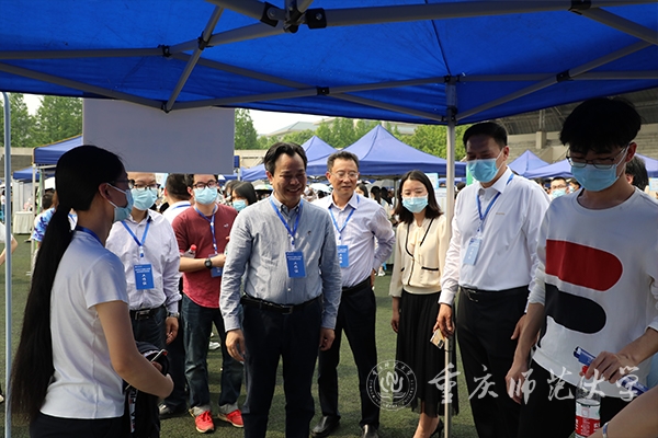 在双选会现场,校领导与用人单位以及前来应聘的毕业生深入交流,介绍学校人才培养特色,感谢用人单位到校选才,鼓励学生通过参与实习实践等方式积极做好职业规划,主动服务基层和国家重点领域,实现更充分和更高质量的就业。