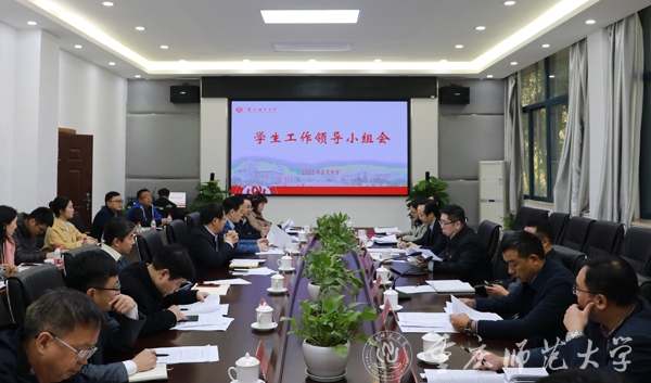 孟东方校长在听取汇报和发言后,充分肯定了全校学生工作自学生工作大会后,特别是干部调整以来在工作干劲和工作态势上所呈现出的新气象。孟校长指出,学生工作要始终围绕立德树人根本任务,强化新形势新要求的应对能力,在制度机制上下工夫,铆足持续高质量发展的后劲。学生工作下一步要紧扣迎接学习贯彻党的二十大精神这一主线,突出工作重点。要围绕“一切为了学生、为了学生一切、为了一切学生”推进“三全育人”和十大育人体系建设,拓宽思路做好辅导员队伍建设,突出优势办好共青团建团100周年专题活动,敢于破题拓宽毕业生就业路径,更高标准推进学生心理健康教育与咨询中心提档升级,务求实效加快学生教育管理服务信息化水平提升,深入落地加强美育、劳动教育和学生科研,全面提升育人能力和水平。最后,孟校长就学生工作领导小组如何推动工作特别强调,一要注重顶层设计、系统思考、目标管理,以科学的方法推进学生工作;二要夯实基础、强化特色、突出重点,充分彰显重师人才培养特点;三要加强联动、形成合力、务求实效,用实干的措施保障工作落实落细。