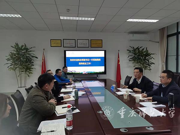 在调研的学院就业工作座谈会上,各学院对目前学工情况、近年学生就业情况、就业工作开展情况进行了汇报,并介绍了下一步的工作措施和工作思路。陈志军副书记一行与学院党政领导、辅导员对毕业生就业进行了深入的交流、讨论。
